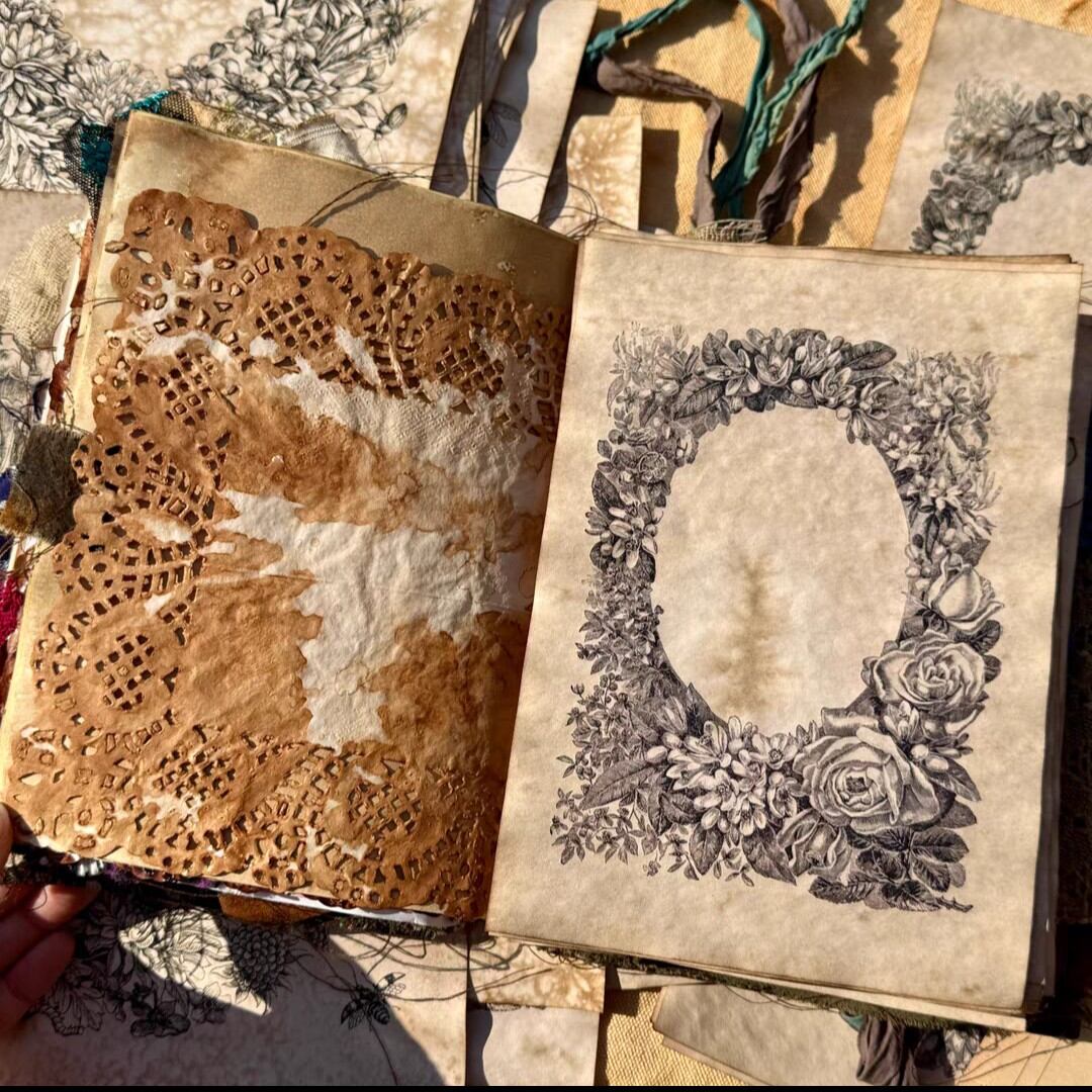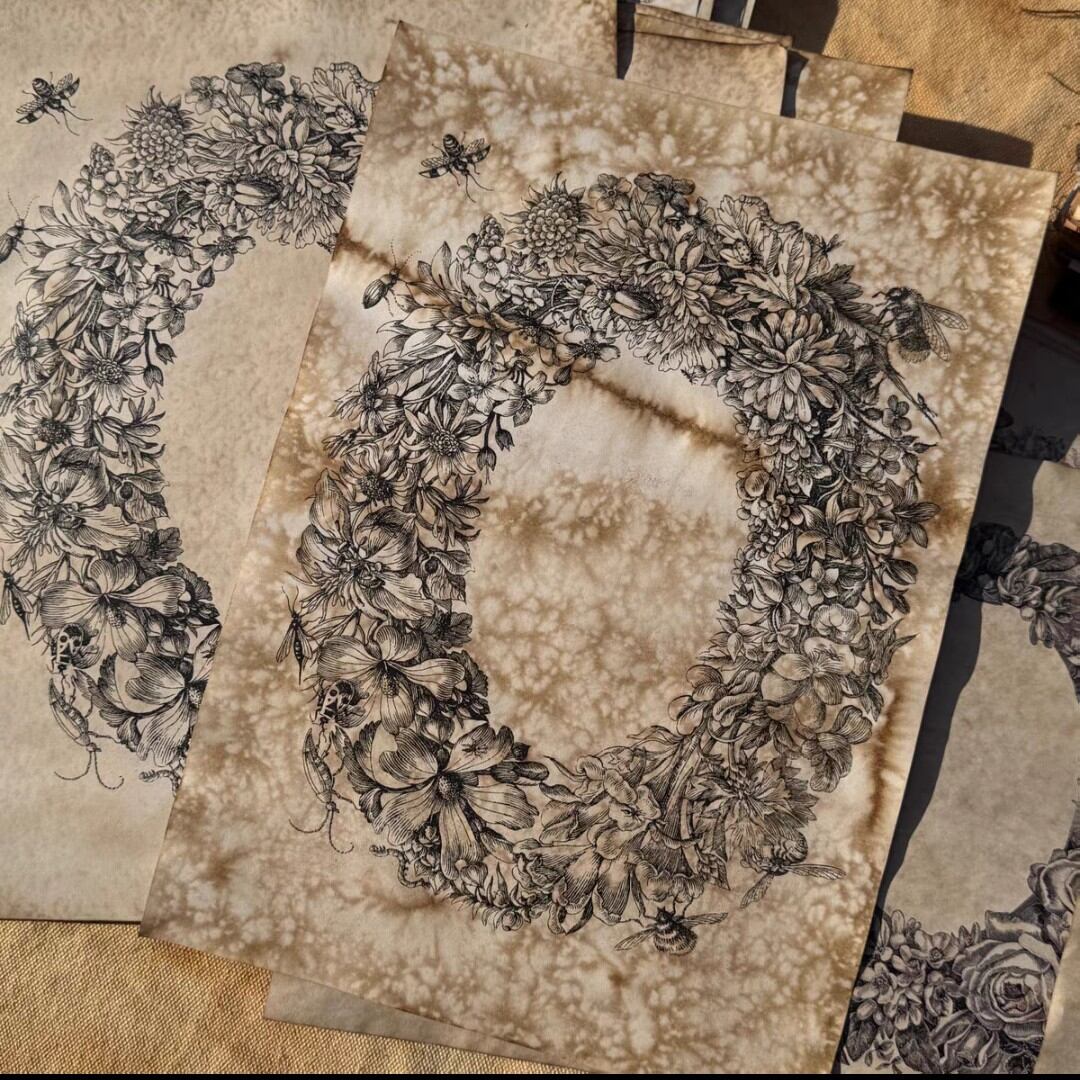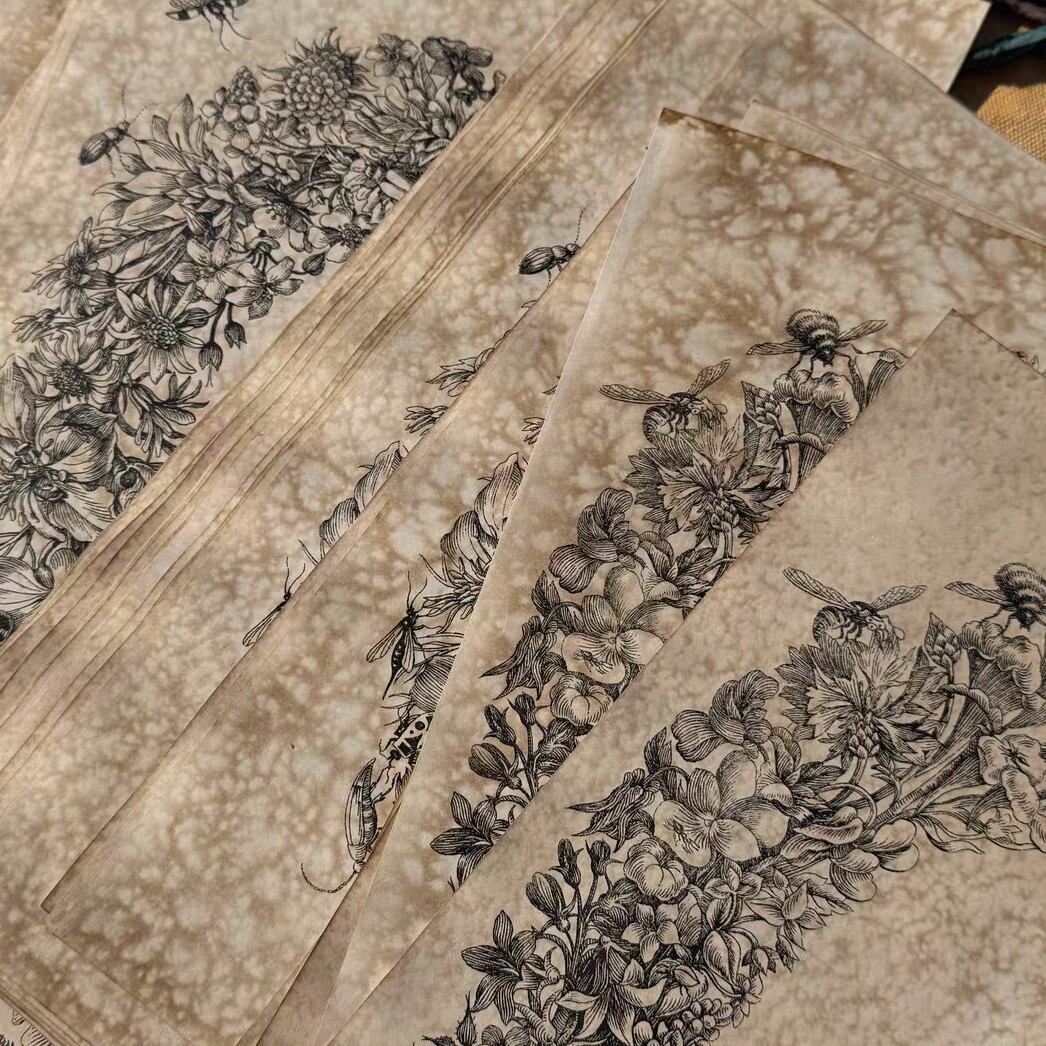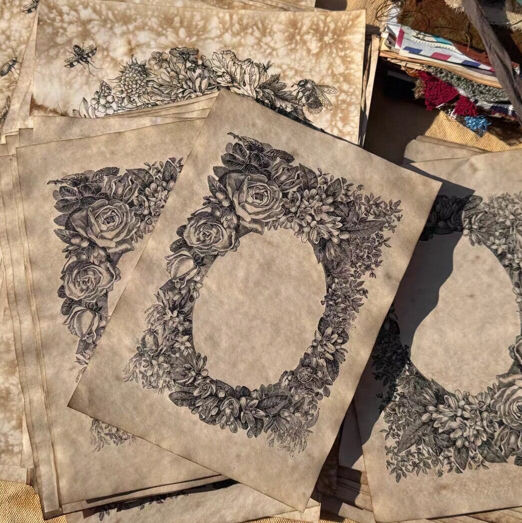 海外 珈琲染 素材紙 フラワーベゼル 2種類 A5