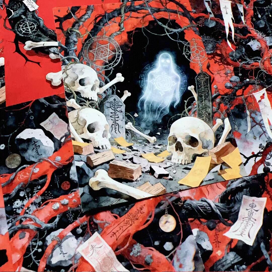 海外 素材紙 ダーク スカル 魔法陣