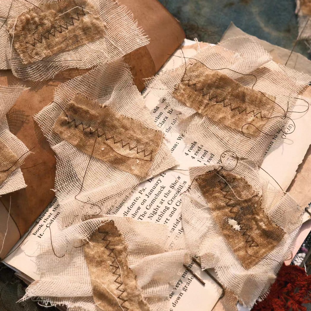 布やガーゼを無造作にステッチしてある