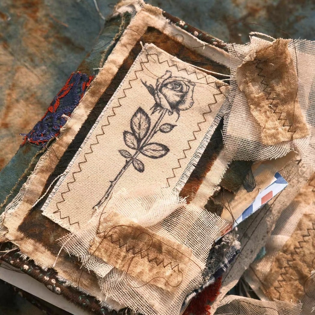 海外 珈琲染 コラージュ装飾 ステッチ