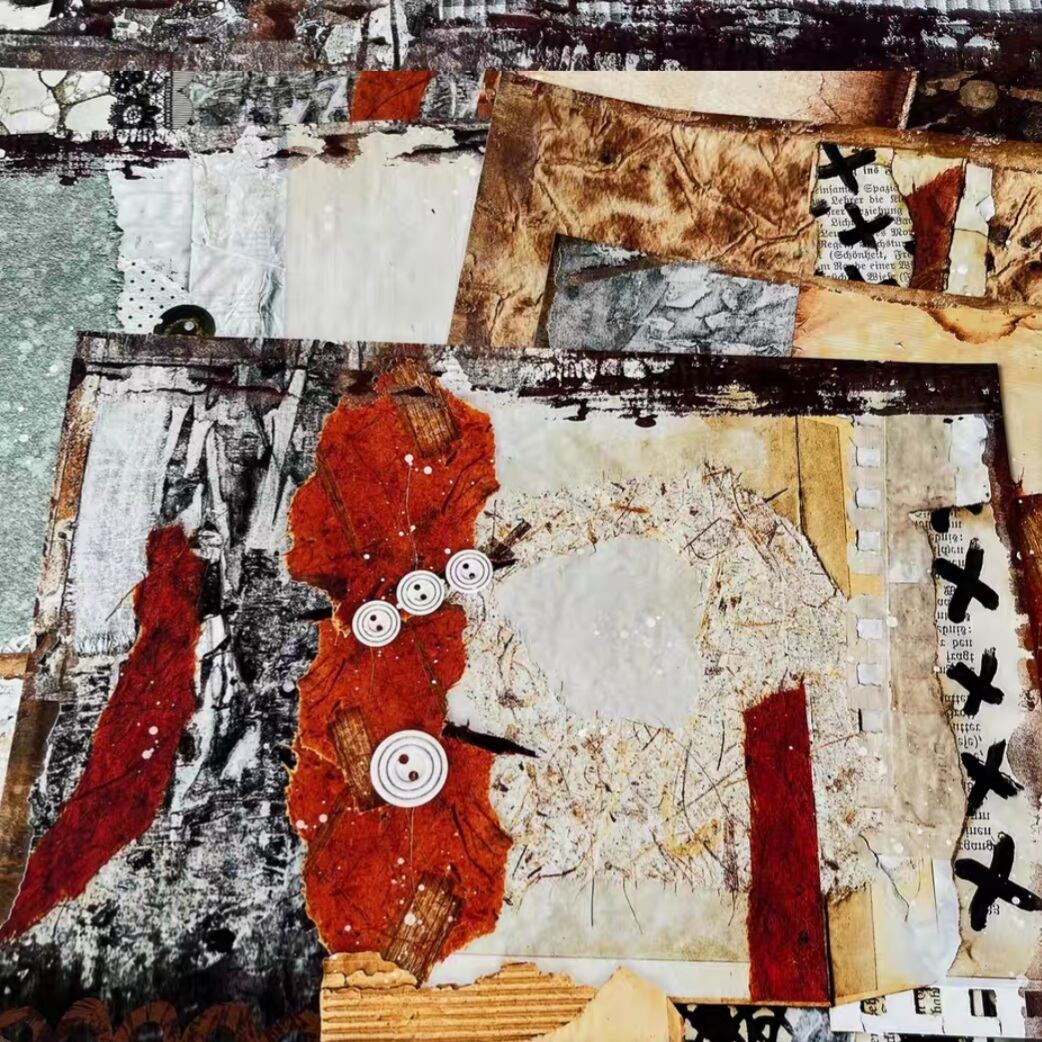 [再販]海外 背景紙 ブラウン コラージュデザイン