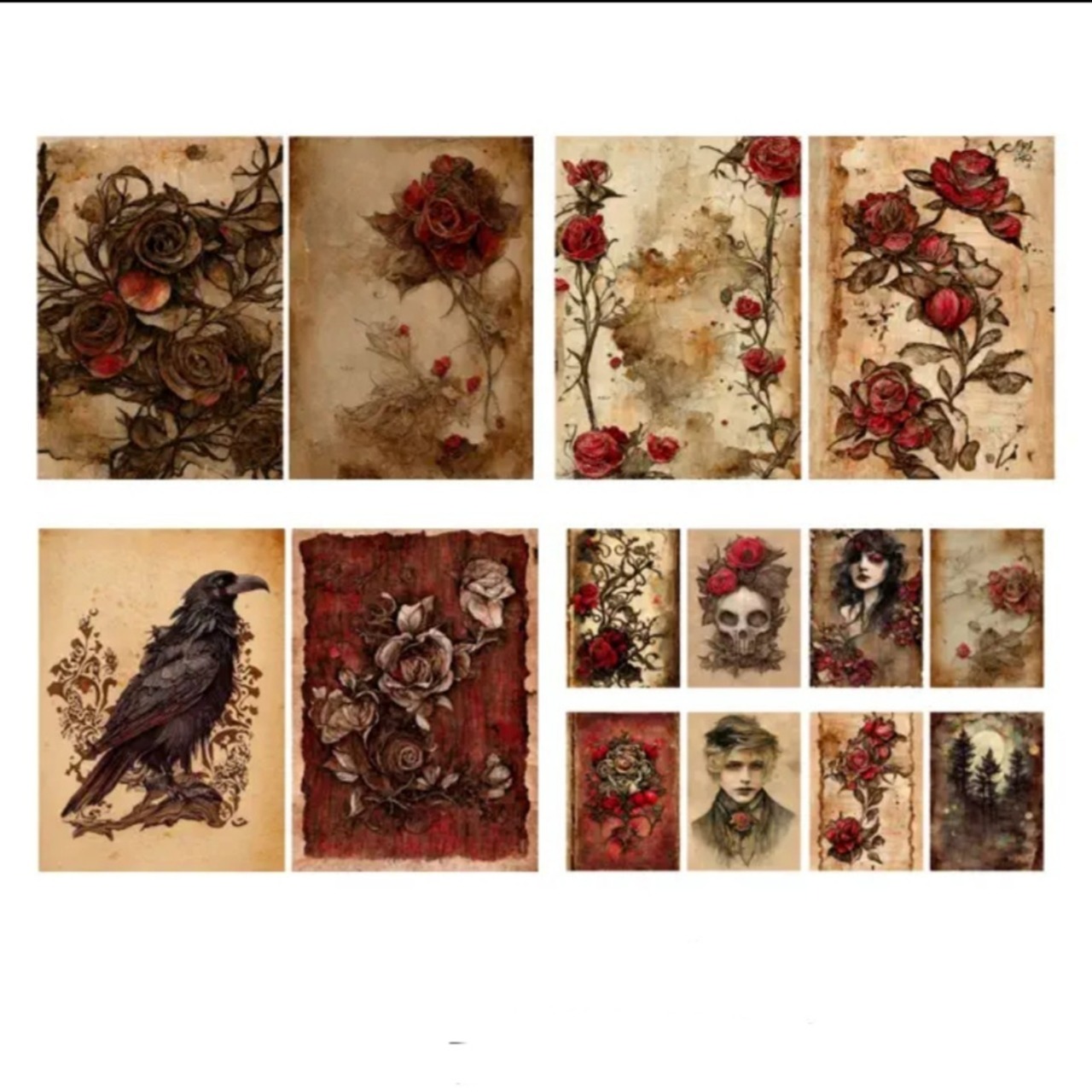 海外 素材紙 ダーク 魔女 カラス ローズ