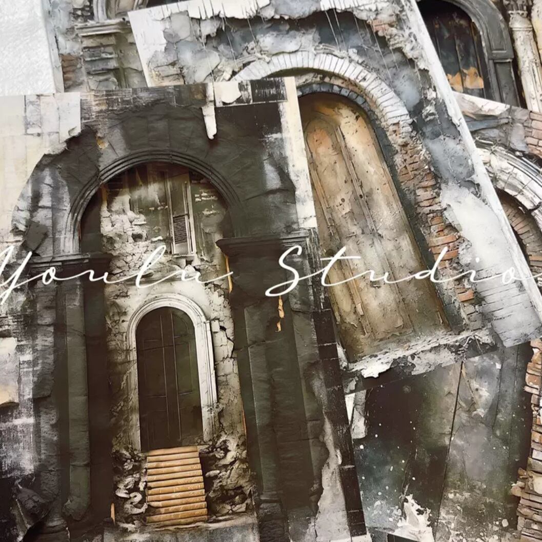 海外 素材紙 ヴィンテージ レンガの壁 ドア