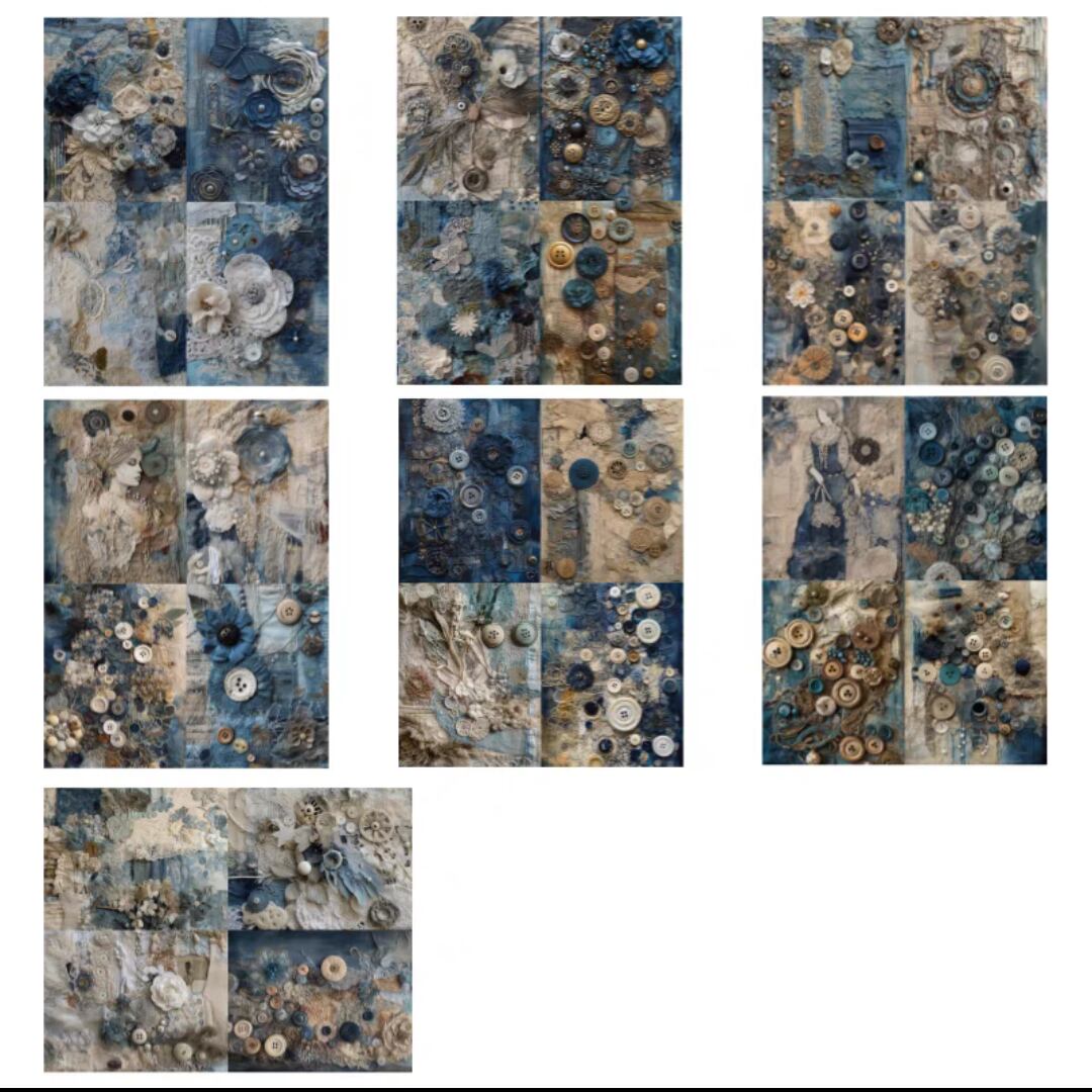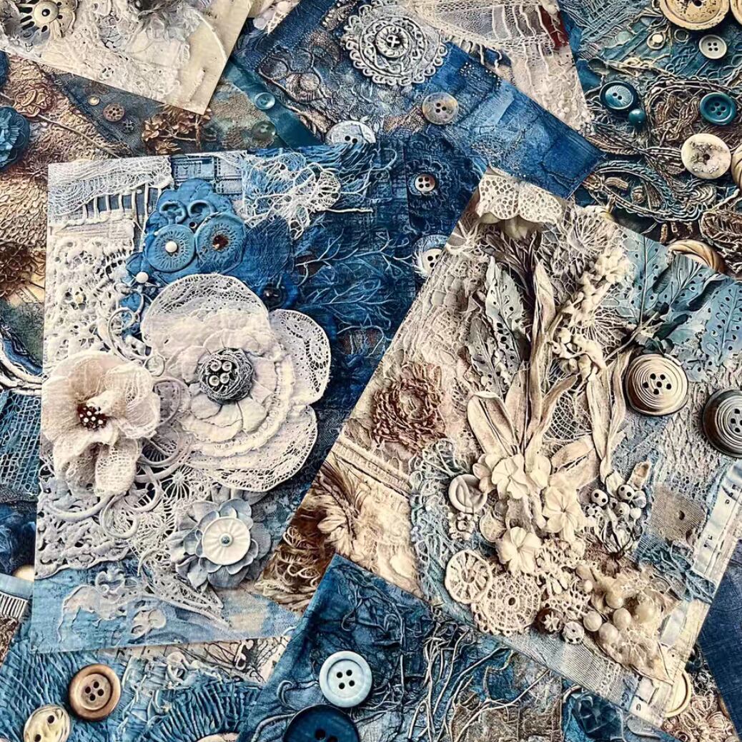[再販] 海外 素材紙 ヴィンテージブルー デニム フラワー