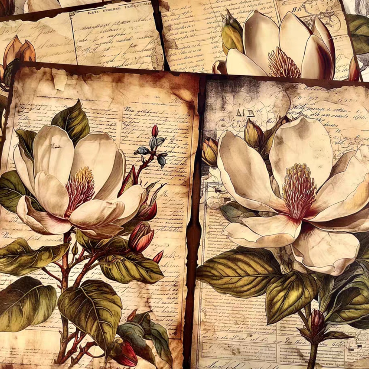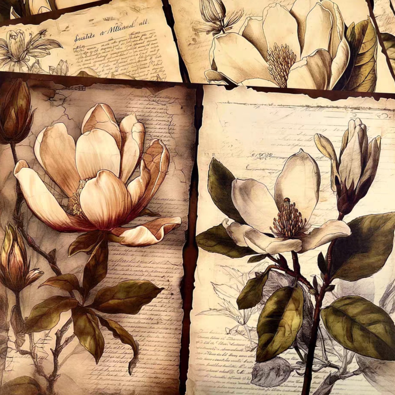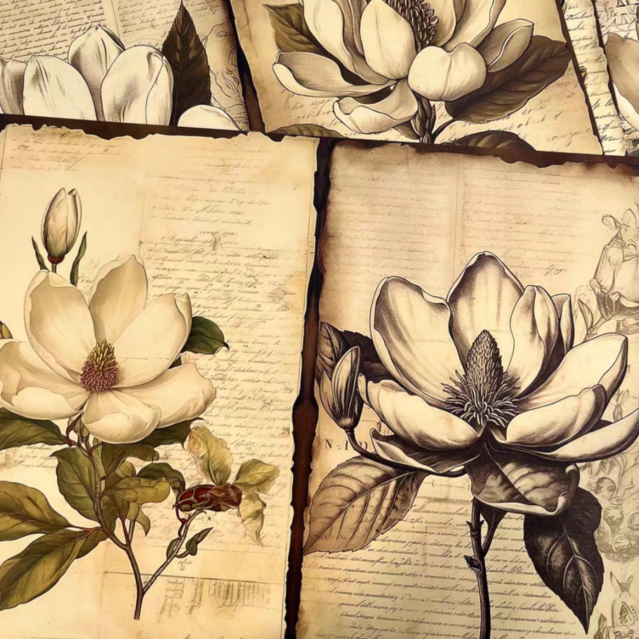 海外 素材紙 モノクロ アメリカンカントリー モクレン